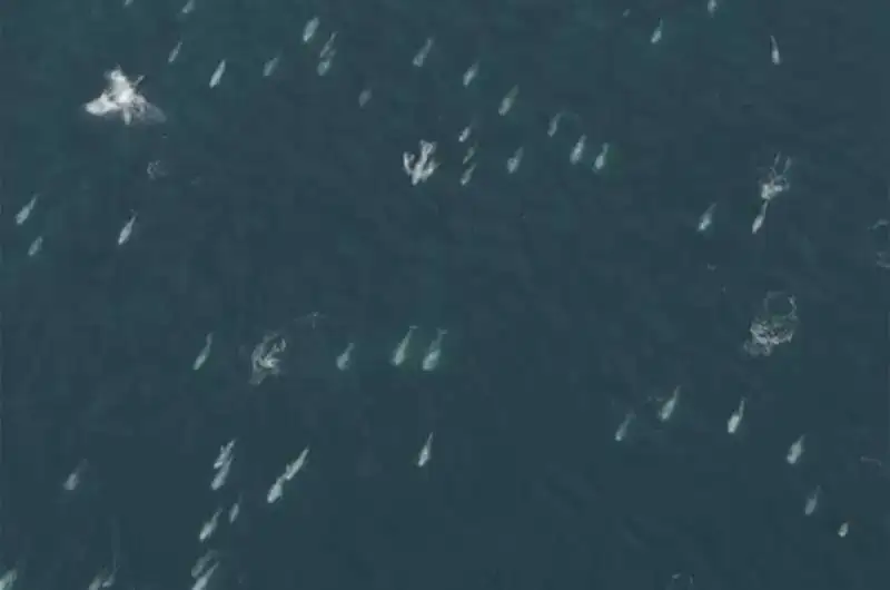 Meksikanın Aşağı Kaliforniya sahillərində çoxalma laqonlarına gedən boz balinaların illik miqrasiyasını izləmək üçün səfərdə olan dəniz bioloqu Colleen Talty 1500-dən çox delfinin qayıqlarının ətrafında ovuşdurulduğunu görmək “olduqca heyrətamiz” adlandırıb.