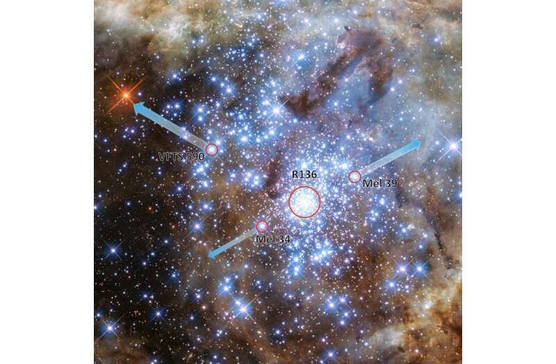 Leiden Universiteti tərəfindən Gaby Clark tərəfindən redaktə edilmişdir , Andrew Zinin tərəfindən nəzərdən keçirilmişdir  Redaktorların qeydləriTarantula Dumanlığında R136 klasterindən atılan qaçan ulduzların sxematik təsviri VFTS 590, ikili ulduz Mel 39 və ikili ulduz Mel 34. Kredit: NASA, ESA, P. Crowther/Şeffild Universiteti, Mitchel Stoop. Simon Portegies Zwart-ın başçılıq etdiyi astronomlar 60.000 il əvvəl R136 ulduz çoxluğundan üç ulduzun necə atıldığını […]
