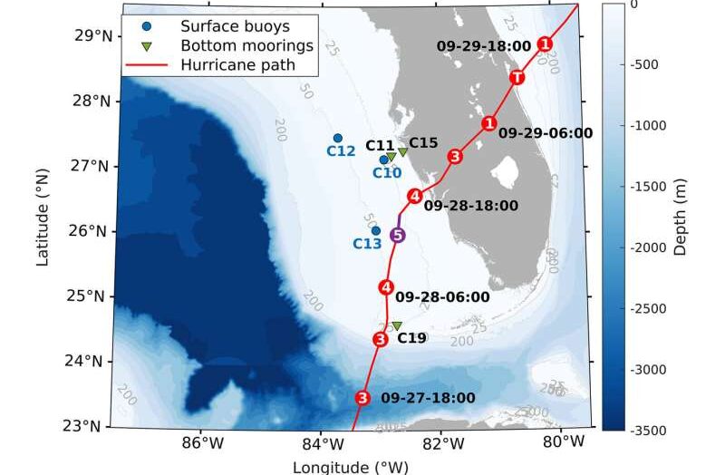 Carlyn Scott, Cənubi Florida Universiteti Stefani Baum tərəfindən redaktə edilmişdir , Andrew Zinin tərəfindən nəzərdən keçirilmişdir  Redaktorların qeydləriUSF COMPS yanalma stansiyalarının yerləri: yerüstü şamandıralar (C10, C12 və C13), aşağıya quraşdırılmış dayaqlar (C11, C15 və C19). Ian qasırğasının yolu intensivlik (kateqoriya) dəyişiklikləri ilə birlikdə qırmızı xətt kimi göstərilir. Arxa fonda 25, 50 və 200 m izobatların etiketlənməsi ilə batimetriya konturları […]