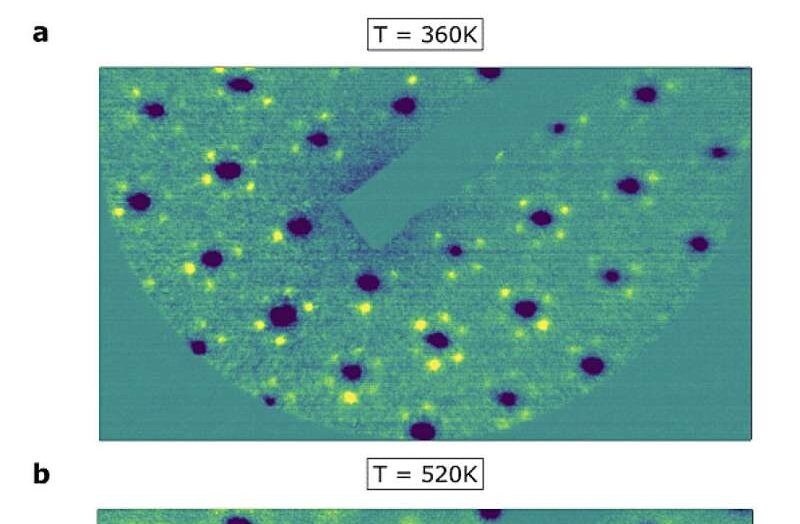 İnqrid Fadelli , Phys.org tərəfindən Sadie Harley tərəfindən redaktə edilib , Robert Egan tərəfindən nəzərdən keçirilib  Redaktorların qeydləri  GIST Tercih edilən mənbə kimi əlavə edin a, 360 K başlanğıc temperaturdan (T) foto-həyəcanlanmadan sonra 1T- TaS2 -nin diferensial elektron difraksiya nümunəsi. Hər Bragg zirvəsinin ətrafında impuls qətnaməsi ilə məhdudlaşan CDW difraksiya pikləri dəstləri mövcuddur ki, bu da CDW-nin bərk vəziyyətdə yenidən kristallaşdığını göstərir. […]