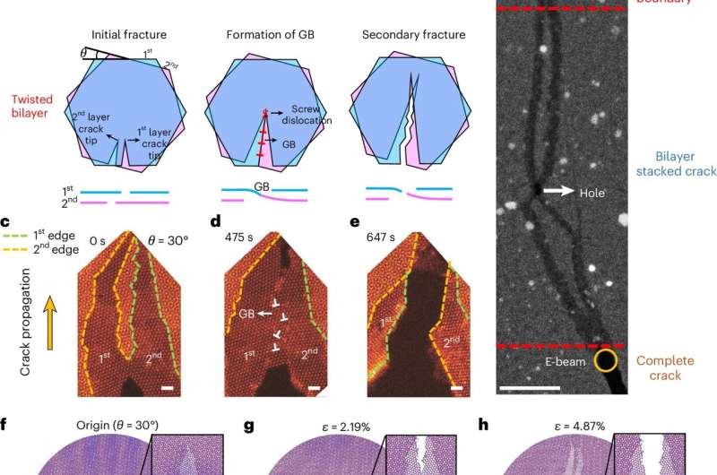 Redaktorların qeydləriBükülmüş ikiqatlı MoS 2- nin qırılma prosesinin yerində STEM müşahidəsi . Kredit: Təbiət Materialları (2025). DOI: 10.1038/s41563-025-02193-y