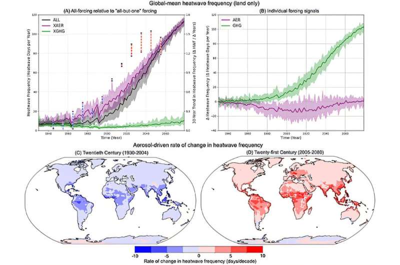 Daha çox məlumat: Geeta G Persad və digərləri, Antropogen aerozol dəyişiklikləri qlobal isti dalğası təhlükəsi və məruz qalmanın təkamülünə qeyri-mütənasib şəkildə təsir göstərir, Ətraf Mühitin Tədqiqat Məktubları (2025). DOI: 10.1088/1748-9326/addee0