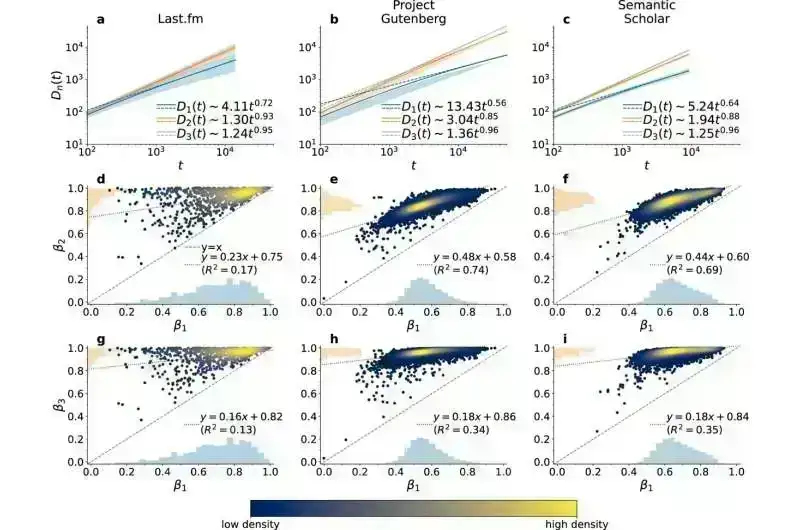 Komanda, birləşmələrin Heaps qanunu, güc-qanun artımı əlaqəsi ilə idarə olunan proqnozlaşdırıla bilən nümunələrə əməl etdiyini aşkar etdi. Bu, yeni birləşmələrin zamanla necə yarandığını təsvir edən, innovativ prosesləri ölçmək və proqnozlaşdırmaq üçün kəmiyyət üsulunu təklif edən riyazi əlaqədir.