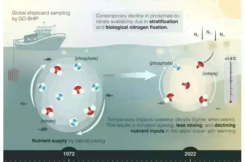 Daha çox məlumat: Skylar D. Gerace et al, Yuxarı okean fosfatdan nitrata əlçatanlığında müşahidə edilən azalmalar, Milli Elmlər Akademiyasının əsərləri (2025). DOI: 10.1073/pnas.2411835122