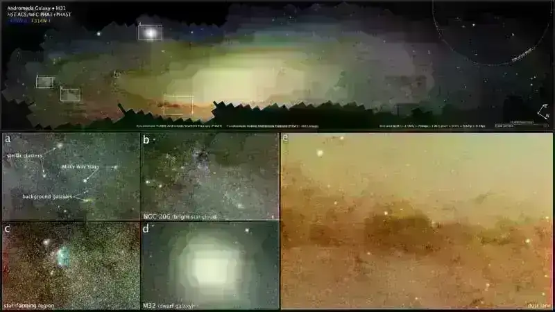 Bu panorama təxminən on il əvvəl Panchromatic Hubble Andromeda Treasury (PHAT) proqramı ilə başladı. Şəkillər Andromedanın şimal yarısının fotoşəkilini çəkmək üçün Hubble-da Tədqiqatlar üçün Qabaqcıl Kamera və Geniş Sahə Kamerası 3-dən istifadə etməklə yaxın ultrabənövşəyi, görünən və yaxın infraqırmızı dalğa uzunluqlarında əldə edilmişdir.