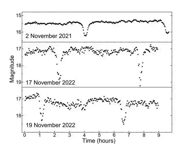 Tədqiqata görə, aşkar edilmiş tutulmalar J0359 parlaqlığının dəyişməsi ilə bağlı dərinlik və genişlikdə dəyişikliklər nümayiş etdirib. Məlum olub ki, parlaqlıq azaldıqca, tutulmalar daha da dərinləşir və daralır.
