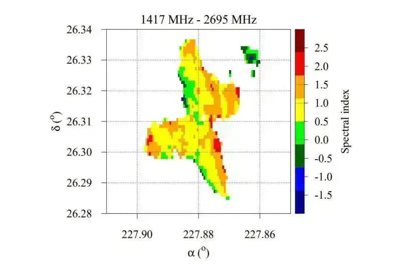 Yovanoviç və həmkarları iki tezlik arasında əldə edilən spektral indeks paylamalarını əldə edə bildilər: 1,417 və 2,695 MHz, eləcə də 1,646 və 2,695 MHz. Onlar bu paylanmaların 3C 315-in bütün ərazisində necə dəyişdiyini müşahidə etdilər.