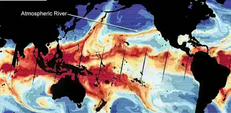 Atmosfer çayları – ABŞ-ın Qərb Sahilinə və bir çox digər bölgələrə güclü yağış və tufanlar gətirən səmada uzun, dar su buxarı zolaqları – daha yüksək enliklərə doğru dəyişir və bu, bütün dünyada hava şəraitini dəyişir.