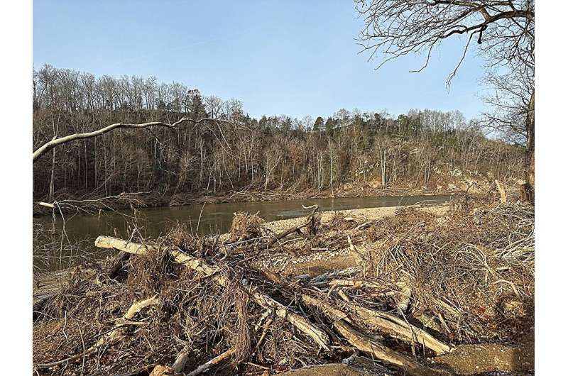 Redaktorların qeydləriTennessi ştatının Çakki şəhərindəki Çakki çimərliyindən yuxarı axarda görünən Noliçuki çayının bir hissəsi Tennessi ştatının şimal-şərqindəki 10 əyaləti əhatə edən Helene qasırğasının yaratdığı dağıntılara nəzər salır. Kredit: D. McIntosh, UTIA.