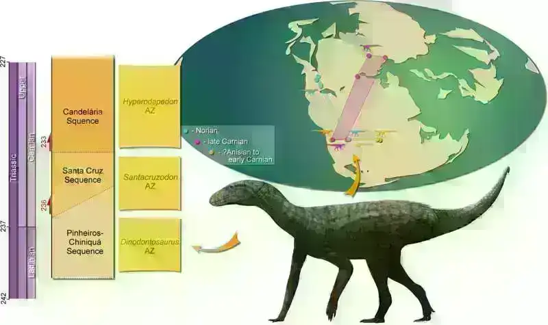 Braziliyada tapılan fosil dinozavrların 237 milyon illik bacı qrupuna aiddir.