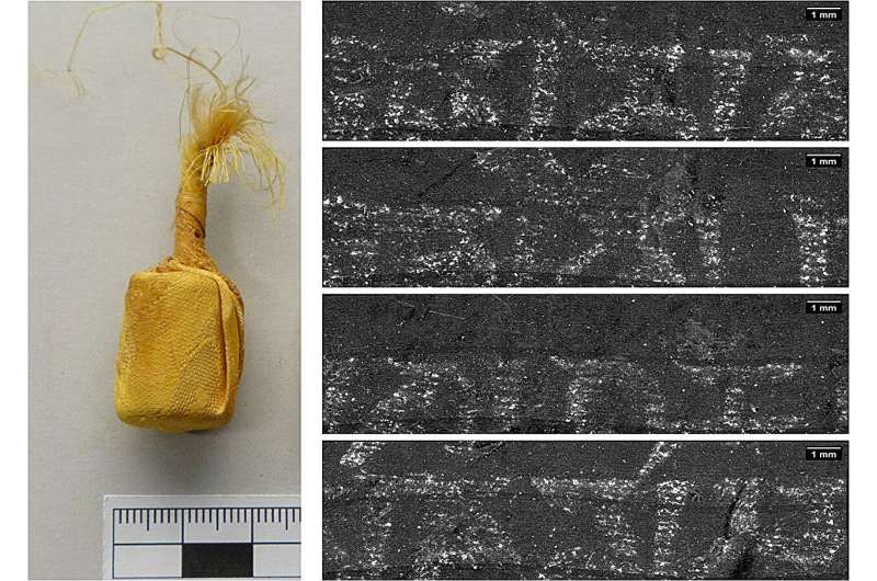 Redaktorların qeydləriRulon BESSY II-də təhlil edilir və faktiki olaraq açıla bilər. Açılan zolaqda “Om mani padme hum” görünür. Kredit: DOI: 10.1016/j.culher.2025.06.009