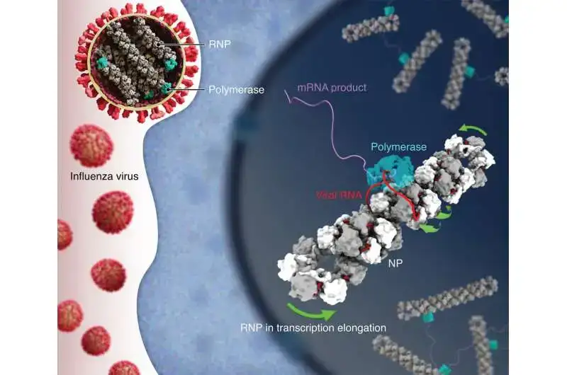 Pensilvaniya Universitetinin tədqiqatçıları qrip ribonukleoprotein komplekslərinin içərisində sağ əlli, antiparalel ikiqat spiral aşkar etdilər ki, viral polimeraza RNT-ni nüsxə etdiyi