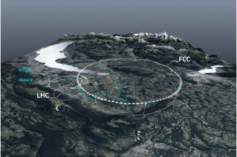 Agnès PEDRERO tərəfindən Andrew Zinin tərəfindən redaktə edilmişdir Redaktorların qeydləriGələcəyin Dairəvi Toqquşdurucusu (FCC) və indiki Böyük Adron Kollayderinin (LHC) tunellərini göstərən