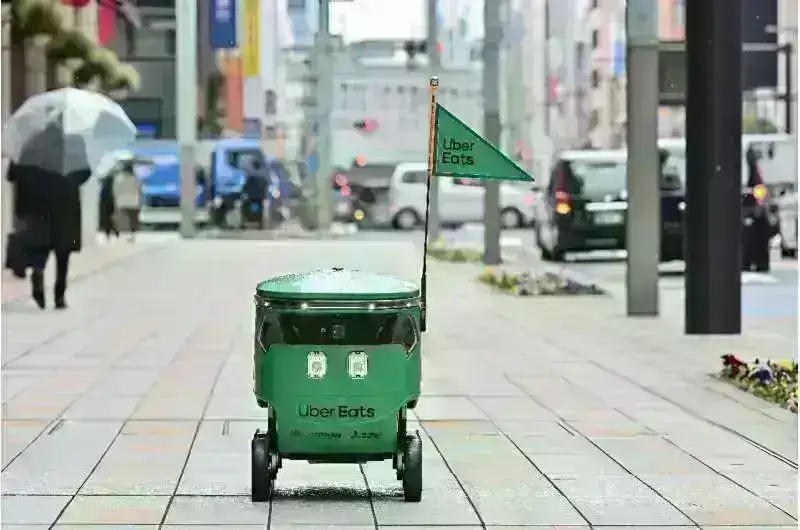 Yaponiya robotların çatdırılmasına icazə vermək üçün keçən il yol hərəkəti qaydalarına dəyişiklik etdi. “Diqqət: robot!” Uber Eats-də sifariş edilən yeməyi götürmək