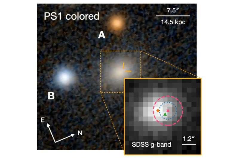 Tomasz Nowakowski , Phys.org Sadie Harley tərəfindən redaktə edilmiş , Robert Eqan tərəfindən nəzərdən keçirilmişdir Redaktorların qeydləriKeçicinin ev sahibi qalaktikasındakı mövqeyi. Əsas panel qalaktikanın PS1