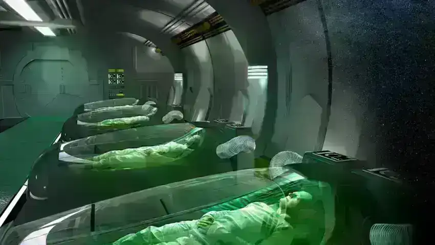 Bir yeniyetmə kosmik gəmiyə minən insanlar sırasına qoşulur. Gəmiyə mindikdən sonra çarpayıya yaxınlaşır, sürünərək içəri girir, qapağı bağlayır və yuxuya