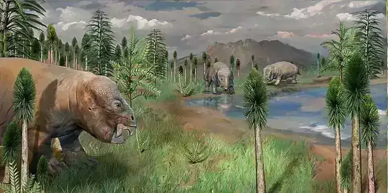 Bərpa edilmiş palinomorflar, bitkilər və tetrapodlar, eləcə də Cənubi Taodonggou Bölməsindən sedimentoloji məlumatlar əsasında Perm dövrünün kütləvi məhvindən sonra yerin ekoloji mənzərəsinin bədii yenidən qurulması. Kredit: Yang Dinghua