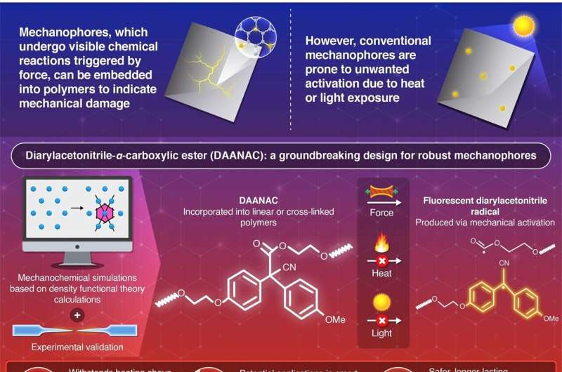Daha çox məlumat: Yuto Uchida və digərləri, Davamlı Mexanoresensiv Polimerlər üçün Termal və Fotokimyəvi Sabit Flüoresan Radikal Tipli Mexanofor, Amerika Kimya Cəmiyyətinin Jurnalı (2025). DOI: 10.1021/jacs.5c15553