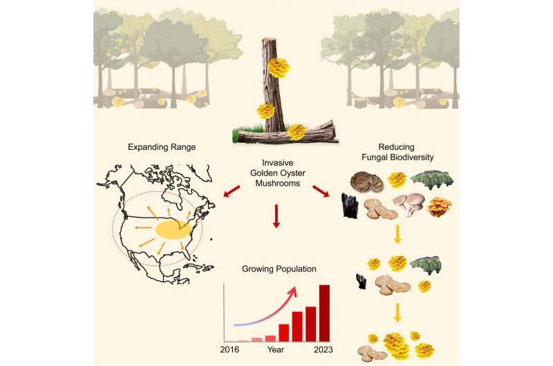 Daha çox məlumat: Aishwarya Veerabahu və digərləri, İnvaziv qızıl istiridyə göbələkləri Şimali Amerikada yayıldıqca yerli göbələk icmalarını pozur, Cari Biologiya (2025). DOI: 10.1016/j.cub.2025.06.049