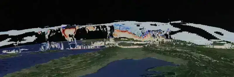 Animasiyanın bu mərhələsində, bulud profilli radar, ildırım buludları içərisində əmələ gələn böyük hissəciklər sayəsində məlumatların əksəriyyətini çatdırır. Sonra, atmosfer lidarı buludun ən yuxarı bölgəsində 1-2 km-lik təbəqəni aşkar edərək, buludun üstündəki buz təbəqəsi haqqında mühüm detalları ortaya qoyur.