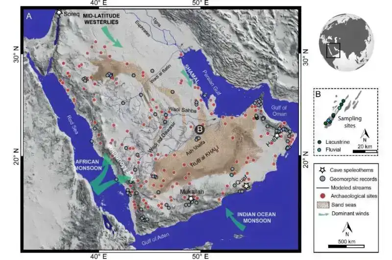 https://googleads.g.doubleclick.net/pagead/ads?gdpr=0&us_privacy=1—&gpp_sid=-1&client=ca-pub-0536483524803400&output=html&h=188&slotname=8188791252&adk=1687169288&adf=4054963813&pi=t.ma~as.8188791252&w=750&abgtt=6&fwrn=4&lmt=1744019272&rafmt=11&format=750×188&url=https%3A%2F%2Fphys.org%2Fnews%2F2025-04-ancient-lakes-rivers-unearthed-arabia.html&wgl=1&uach=WyJXaW5kb3dzIiwiMTkuMC4wIiwieDg2IiwiIiwiMTM0LjAuNjk5OC4xNzgiLG51bGwsMCxudWxsLCI2NCIsW1siQ2hyb21pdW0iLCIxMzQuMC42OTk4LjE3OCJdLFsiTm90OkEtQnJhbmQiLCIyNC4wLjAuMCJdLFsiR29vZ2xlIENocm9tZSIsIjEzNC4wLjY5OTguMTc4Il1dLDBd&dt=1744019250481&bpp=1&bdt=208&idt=150&shv=r20250403&mjsv=m202504010101&ptt=9&saldr=aa&abxe=1&cookie=ID%3Df22668bce9793ae4%3AT%3D1735196613%3ART%3D1744019158%3AS%3DALNI_Mb4Xpwl1SO1AcvqroR6xccDm_sheQ&gpic=UID%3D00000f7c5320f40b%3AT%3D1735196613%3ART%3D1744019158%3AS%3DALNI_Mb1dz_DHiT2yDzXLMaB9CDkQl4XGg&eo_id_str=ID%3Dcdf7f2f01784f52d%3AT%3D1735196613%3ART%3D1744019158%3AS%3DAA-Afjb8kbeupLLyQ0QHQmZxpM4v&prev_fmts=0x0%2C1905x945&nras=2&correlator=8754541466174&frm=20&pv=1&rplot=4&u_tz=240&u_his=3&u_h=1080&u_w=1920&u_ah=1032&u_aw=1920&u_cd=24&u_sd=1&dmc=8&adx=448&ady=2651&biw=1905&bih=945&scr_x=0&scr_y=0&eid=95355973%2C95355975%2C42531705%2C95331833%2C95356626%2C31090357%2C95357454&oid=2&pvsid=3578203317063818&tmod=27055452&uas=0&nvt=1&ref=https%3A%2F%2Fphys.org%2F&fc=1920&brdim=0%2C0%2C0%2C0%2C1920%2C0%2C1920%2C1032%2C1920%2C945&vis=1&rsz=%7Co%7CpeEbr%7C&abl=NS&pfx=0&fu=128&bc=31&bz=1&td=1&tdf=2&psd=W251bGwsbnVsbCxudWxsLDNd&nt=1&ifi=2&uci=a!2&btvi=1&fsb=1&dtd=22048
