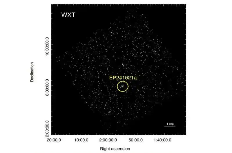 Ətraflı məlumat: Shu Xinwen et al, EP241021a: işıqlı optik və radio emissiyası ilə bir ay davam edən rentgen şüası, arXiv (2025). DOI: 10.48550/arxiv.2505.07665