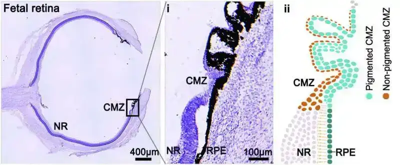 İnsan dölün toxumasının periferik tor qişasında sinir tor qişasının kök kimi hüceyrələrinin fərqli populyasiyası müəyyən edilmişdir. Siliar marjinal zonada yerləşən bu hüceyrələr özünü yeniləməyə və bütün əsas retinal hüceyrə tiplərinə fərqlənmə qabiliyyətinə uyğun molekulyar xüsusiyyətlər göstərdi. Oxşar hüceyrələr üst-üstə düşən gen ifadə profilləri ilə retina orqanoidlərinin eyni anatomik bölgəsində meydana çıxdı.