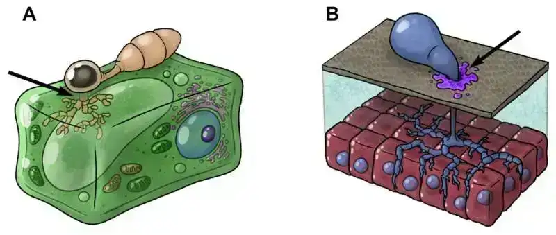 Tədqiqata görə, bitkilər onurğalar, tikanlar və sancılan tüklər vasitəsilə heyvanlara toksinlər vurur, bəziləri isə qorunmaq müqabilində yaşayış yerləri və qida təmin edərək sancılan qarışqalarla birlikdə yaşayır. Hətta bakteriya və viruslar, toksinləri ev sahibi hüceyrələr və yaralar vasitəsilə hədəflərinə daxil etmək üçün ifrazat sistemləri və ya kontraktil inyeksiya sistemləri kimi mexanizmlər inkişaf etdirmişlər.