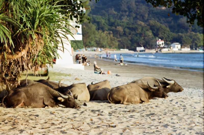 Redaktorların qeydləriHonq-Konqdakı cənub Lantau çimərliyində insan çimənlərlə yanaşı camışlar bürünc medal qazanıblar. Kredit: Dr. Danhe Yang