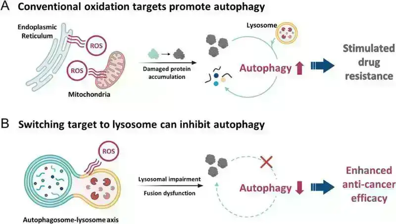 Bu autofagiya ilə mübarizə aparmaq üçün tədqiqat qrupu morfolin və iridiumu birləşdirən fotoreaktiv birləşmə hazırladı. Morfolin seçici olaraq hüceyrə lizosomlarını, otofagiyanın baş verdiyi orqanoidləri hədəf alır, iridium isə oksidləşdirici zədələnməyə səbəb olmaq üçün işığa məruz qaldıqda aktivləşir.