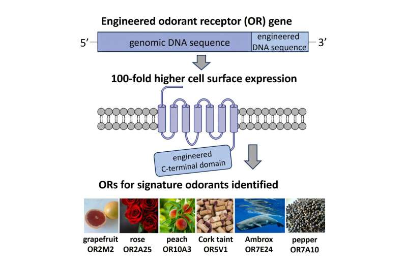 https://googleads.g.doubleclick.net/pagead/ads?gdpr=0&us_privacy=1—&gpp_sid=-1&client=ca-pub-0536483524803400&output=html&h=280&slotname=8188791252&adk=1751428779&adf=308666314&pi=t.ma~as.8188791252&w=540&fwrn=4&fwrnh=0&lmt=1760434580&rafmt=1&armr=3&format=540×280&url=https%3A%2F%2Fphys.org%2Fnews%2F2025-10-lab-boosted-olfactory-receptor-reveals.html&fwr=0&rpe=1&resp_fmts=3&wgl=1&aieuf=1&uach=WyJXaW5kb3dzIiwiMTkuMC4wIiwieDg2IiwiIiwiMTQxLjAuNzM5MC43NiIsbnVsbCwwLG51bGwsIjY0IixbWyJHb29nbGUgQ2hyb21lIiwiMTQxLjAuNzM5MC43NiJdLFsiTm90P0FfQnJhbmQiLCI4LjAuMC4wIl0sWyJDaHJvbWl1bSIsIjE0MS4wLjczOTAuNzYiXV0sMF0.&abgtt=6&dt=1760434580008&bpp=1&bdt=95&idt=61&shv=r20251009&mjsv=m202510090101&ptt=9&saldr=aa&abxe=1&cookie=ID%3De2af2bea6b3e2e90%3AT%3D1735548424%3ART%3D1760434345%3AS%3DALNI_MZIaWdAh-lthHlhpkWN2g6ZC7xT8A&gpic=UID%3D00000f8412a58936%3AT%3D1735548424%3ART%3D1760434345%3AS%3DALNI_MaJ_6ILTTPz6uEc3lU2rNf9ZPgQbA&eo_id_str=ID%3D87e2ccb6da8adec8%3AT%3D1751372215%3ART%3D1760434345%3AS%3DAA-AfjZUvMhCDRLD_DCppu51g7Xx&prev_fmts=0x0&nras=1&correlator=8505721195905&frm=20&pv=1&rplot=4&u_tz=240&u_his=3&u_h=864&u_w=1536&u_ah=816&u_aw=1536&u_cd=24&u_sd=1.25&dmc=8&adx=395&ady=2245&biw=1521&bih=730&scr_x=0&scr_y=0&eid=31095105%2C95368093&oid=2&pvsid=976027572447974&tmod=2060673123&uas=0&nvt=1&ref=https%3A%2F%2Fphys.org%2F&fc=1920&brdim=0%2C0%2C0%2C0%2C1536%2C0%2C1536%2C816%2C1536%2C730&vis=1&rsz=%7C%7CpeEbr%7C&abl=CS&pfx=0&fu=128&bc=31&bz=1&td=1&tdf=2&psd=W251bGwsbnVsbCxudWxsLDNd&nt=1&ifi=2&uci=a!2&btvi=1&fsb=1&dtd=166