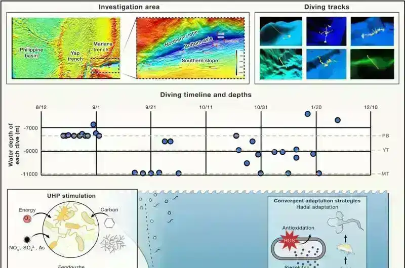 https://googleads.g.doubleclick.net/pagead/ads?gdpr=0&us_privacy=1—&gpp_sid=-1&client=ca-pub-0536483524803400&output=html&h=188&slotname=8188791252&adk=1687169288&adf=4054963813&pi=t.ma~as.8188791252&w=750&abgtt=6&fwrn=4&lmt=1741692923&rafmt=11&format=750×188&url=https%3A%2F%2Fphys.org%2Fnews%2F2025-03-mariana-trench-lifeforms-flourishing-deep.html&wgl=1&uach=WyJXaW5kb3dzIiwiMTkuMC4wIiwieDg2IiwiIiwiMTMzLjAuNjk0My4xNDIiLG51bGwsMCxudWxsLCI2NCIsW1siTm90KEE6QnJhbmQiLCI5OS4wLjAuMCJdLFsiR29vZ2xlIENocm9tZSIsIjEzMy4wLjY5NDMuMTQyIl0sWyJDaHJvbWl1bSIsIjEzMy4wLjY5NDMuMTQyIl1dLDBd&dt=1741692916446&bpp=1&bdt=109&idt=231&shv=r20250305&mjsv=m202503040101&ptt=9&saldr=aa&abxe=1&cookie=ID%3Df22668bce9793ae4%3AT%3D1735196613%3ART%3D1741692770%3AS%3DALNI_Mb4Xpwl1SO1AcvqroR6xccDm_sheQ&gpic=UID%3D00000f7c5320f40b%3AT%3D1735196613%3ART%3D1741692770%3AS%3DALNI_Mb1dz_DHiT2yDzXLMaB9CDkQl4XGg&eo_id_str=ID%3Dcdf7f2f01784f52d%3AT%3D1735196613%3ART%3D1741692770%3AS%3DAA-Afjb8kbeupLLyQ0QHQmZxpM4v&prev_fmts=0x0&nras=1&correlator=1549837607298&frm=20&pv=1&rplot=4&u_tz=240&u_his=3&u_h=1080&u_w=1920&u_ah=1032&u_aw=1920&u_cd=24&u_sd=1&dmc=8&adx=448&ady=2033&biw=1905&bih=945&scr_x=0&scr_y=0&eid=31090873%2C31090875%2C95344787%2C95354310%2C95354324%2C95354336%2C95354597%2C31090803%2C31090357&oid=2&pvsid=3668164978505735&tmod=922817540&uas=0&nvt=1&ref=https%3A%2F%2Fphys.org%2F&fc=1920&brdim=0%2C0%2C0%2C0%2C1920%2C0%2C1920%2C1032%2C1920%2C945&vis=1&rsz=%7Co%7CpeEbr%7C&abl=NS&pfx=0&fu=128&bc=31&bz=1&td=1&tdf=2&psd=W251bGwsbnVsbCxudWxsLDNd&nt=1&ifi=2&uci=a!2&btvi=1&fsb=1&dtd=6819