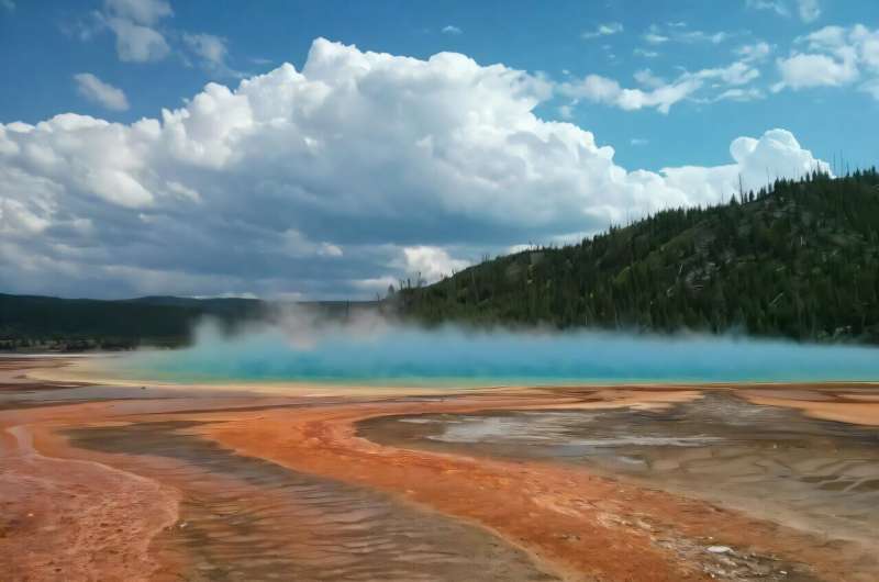 Redaktorların qeydləriYellowstone Milli Parkındakı Qrand Prizmatik isti bulaq onun altındakı maqma kamerasından qaynaqlanır. Parlaq rənglər mineralla zəngin suda hidrofilik bakteriyalar tərəfindən əmələ gəlir. Kredit: Bing Li / Qərb Universiteti