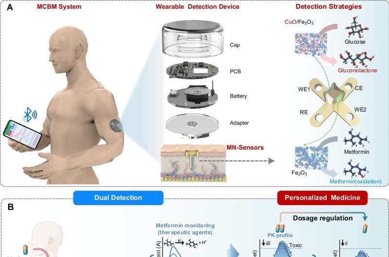 Redaktorların qeydləriQlükoza/metforminin davamlı ikili monitorinqi və farmakoloji əsaslı terapiya üçün smartfon əsaslı MCBM sisteminin konsepsiyası. Kredit: Nature Communications (2025). DOI: 10.1038/s41467-025-61549-9