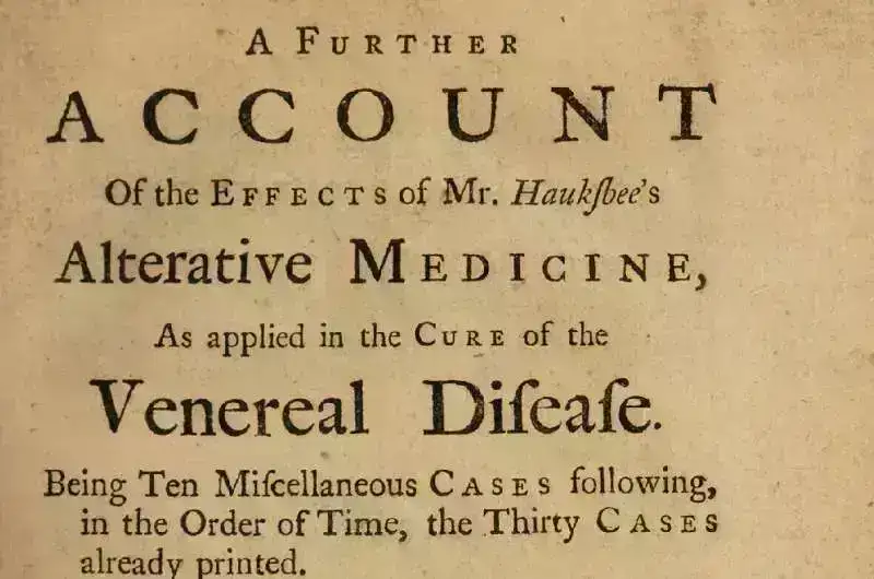Hauksbee öz kitabçasında zöhrəvi xəstəliyin “müalicə edilə bilən dərəcələri” diaqnozu qoyulan 12 xəstənin seçilməsini təklif etdi. Altı xəstə Hauksbee dərmanlarını, altısı isə həkimlər tərəfindən idarə olunan standart müalicələri alacaqdı.