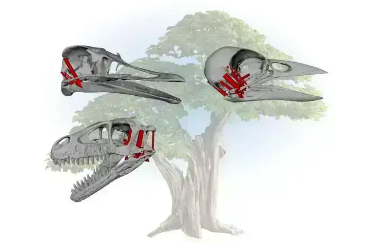 Komanda 3D modellərdən əldə edilən məlumatları təhlil edərkən gördülər ki, quş olmayan teropod dinozavrlarda beyin və kəllə ölçüləri artdıqca, əzələlər damağın ayrılmasına və hərəkətli olmasına imkan verən fərqli mövqelərə keçir. Bu dəyişikliklər öz növbəsində müasir quşların əksəriyyətində kranial kinezi gücləndirən əzələ gücünü artırdı.