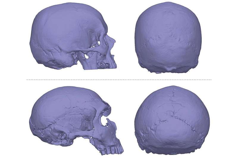 Tədqiqatçılar daha sonra hər iki müasir kəllə dəstini qədim Homo sapiens, Homo erectus, Homo heidelbergensis və Homo neandertalensisdən ibarət səkkiz kəllədən ibarət rəqəmsal modellərlə müqayisə etdilər.