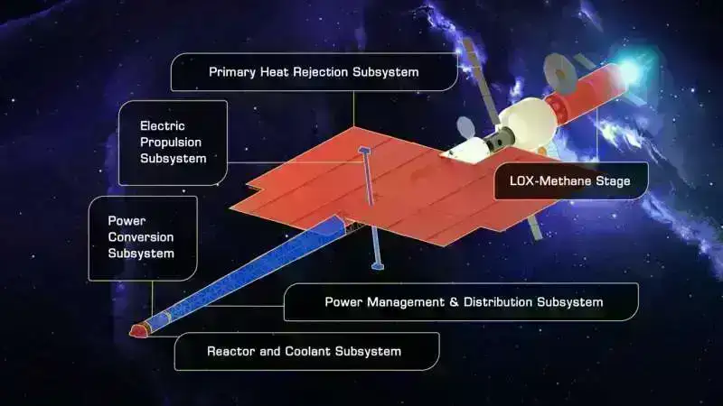 NASA-nın araşdırdığı seçimlərdən biri də ionlaşdıran və ya müsbət yüklənən elektrik enerjisi istehsal etmək üçün nüvə reaktorundan istifadə edən və kosmik gəmiyə təkan vermək üçün qaz yanacaqlarını elektrik sürətləndirən nüvə elektrik mühərrikidir .