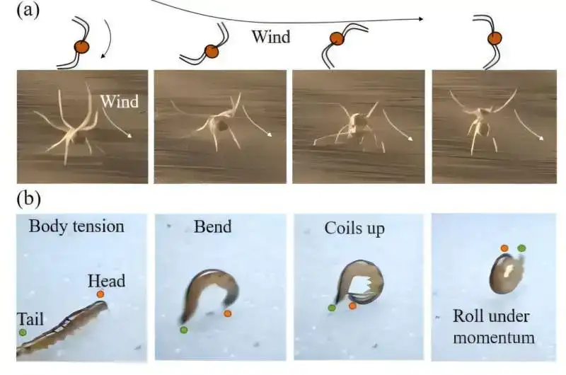 Tapıntılar göstərir ki, yuvarlanma müəyyən bucaqlar diapazonunda eksenel əzələlərin əlaqələndirilmiş aktivləşdirilməsindən asılıdır. Komanda tərəfindən hazırlanmış mexaniki model ardıcıl əzələ daralmalarının hidrostatik skeleti necə deformasiya etdiyini və yuvarlanma hərəkətini yaratmaq üçün ətraf mühitlə qarşılıqlı əlaqədə olduğunu izah edir .