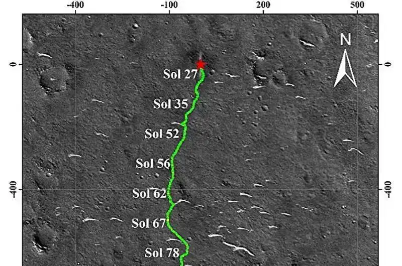 Tədqiqat göstərir ki, Zhurong rover cəmi 2009 metr məsafə qət edib ki, bu da bort odometrinin qeyd etdiyi 1921 metrdən 88 metr çoxdur. Bu uyğunsuzluq marsda roverin hərəkətini başa düşmək üçün dəqiq lokalizasiyanın vacibliyini vurğulayaraq traversin enmə meylinə görə təkərin sürüşməsi nəticəsində yaranıb.