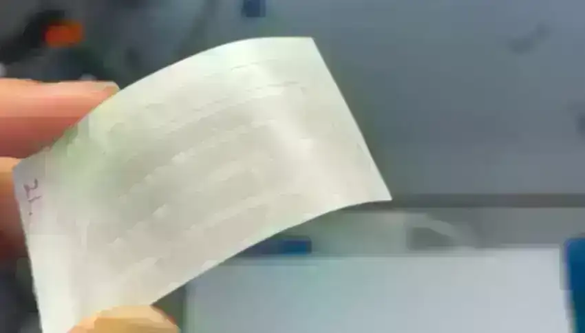 Tatuirovkalar elastik silikon və ultra nazik polimer təbəqələri arasında şəffaf bir qrafen təbəqəsini bükür. Qızıl lent qrafeni elektrik enerjisini cihaz vasitəsilə göndərən enerji mənbəyinə gedən naqillərə bağlayır.