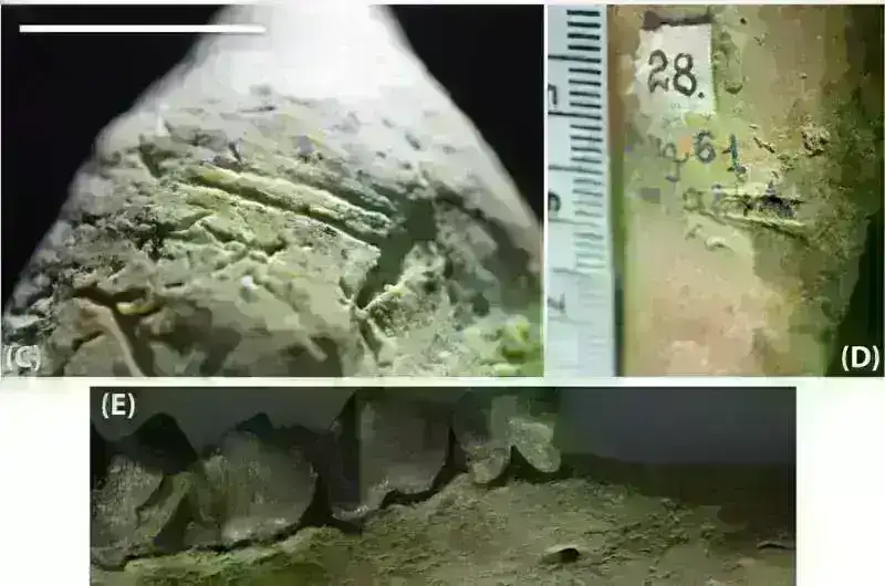 İyirmi sümükdə antropogen səth dəyişiklikləri, o cümlədən yeddi yüksək inamlı kəsiklə işarələnmiş nümunə nümayiş etdirildi. Bu işarələr heyvanların tibia və alt çənələrində tapılmışdır, onlar düz, eninə trayektoriyaları göstərirlər. Kəmiyyət təhlili onların kəsilmiş işarələr kimi təsnifatını təsdiqlədi, onları ətyeyən, tapdalayan və ya qazıntı zədələrindən fərqləndirdi.