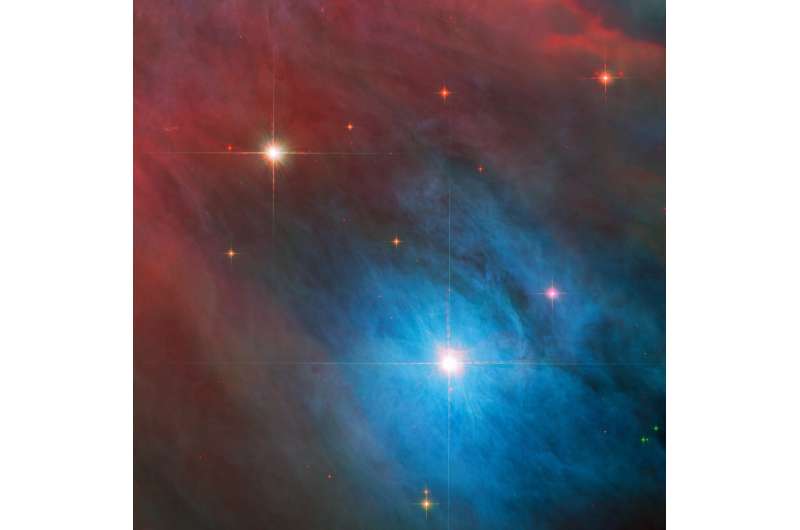 NASA-nın Hubble Kosmik Teleskopu 27 Yanvar 2023-cü ildə yayımlanan bu görüntüdə parlaq dəyişən ulduz V 372 Orionis və onun yoldaşını çəkdi. Cütlük Yerdən təxminən 1450 işıq ili uzaqlıqda ulduz əmələ gəlməsinin böyük bölgəsi olan Orion Dumanlığında yerləşir.
