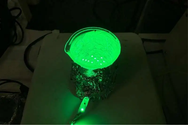 Reaksiya flakonuna hidrofob zəncir ötürmə agenti molekulu (CTA) ilə hidrofilik polimerin sulu məhlulu, polimerləşdiriləcək monomer və azotla dolu inert mühitdə fotokatalizator daxil idi. Sonra bu qarışığı 33°C-də 90 dəqiqə yaşıl LED işığında saxlamağa icazə verildi.