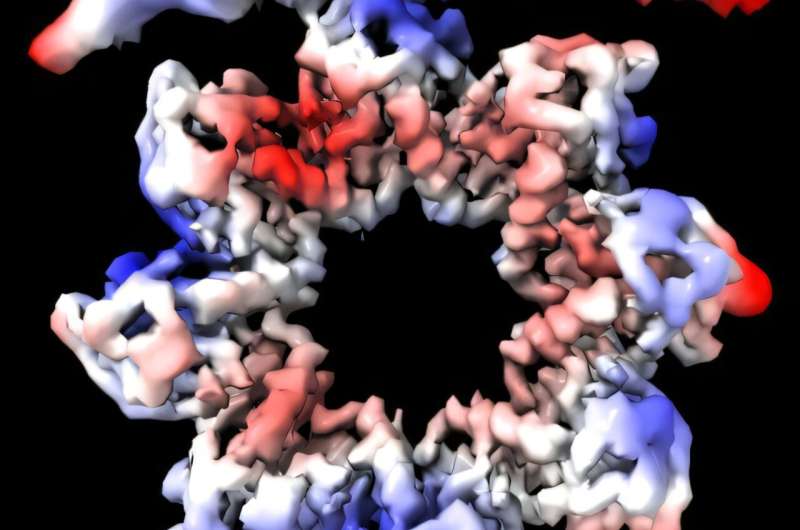 Səkkiz alt hissədən ibarət halqa şəklində olan MraZ zülalı, hüceyrə bölünməsinin tənzimlənməsini başlatmaq üçün promotorun DNT qutularından biri ilə təmasa girir. Şəkil krioelektron mikroskopiyası ilə əldə edilib. Mənbə: UAB