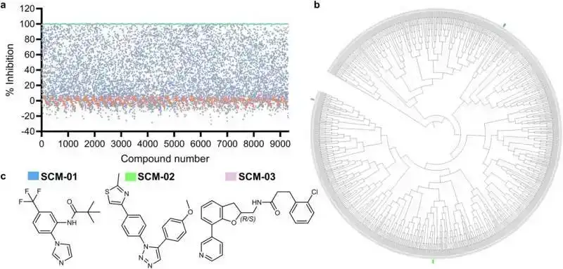 Daha selektiv CYP3A4 inhibitorlarına olan ehtiyacı aradan qaldırmaq üçün tədqiqatçılar 9299 namizəd birləşməni selektiv və güclü CYP3A4 inhibisyonuna nail olan üç inhibitor skafoldundan ibarət panelə qədər kəsmək üçün yüksək məhsuldarlıqlı skrininq həyata keçirdilər.