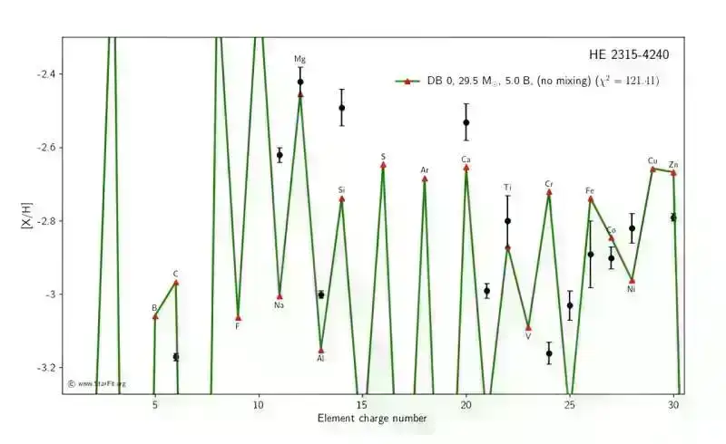 Ümumilikdə, Wang komandası 19 elementin bolluğunu əldə etməyi bacardı. Məlum oldu ki, alfa və dəmir zirvəsi elementləri metaldan zəif olan digər məşhur ulduzların bolluq tendensiyası ilə yaxşı uyğunlaşır. Bu, astronomların fikrincə, ən azı bir fövqəlnovanın HE 2315−4240-ı meydana gətirən qaz buludunda bu elementləri gücləndirdiyini təsdiqləyir.
