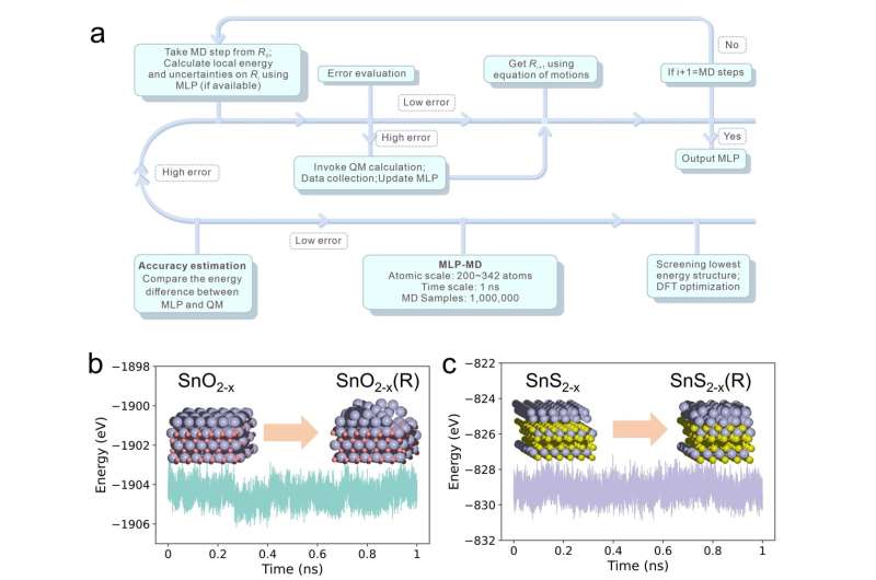 Sn katalizatorlarını yaxından araşdırmaq üçün onlar SnO 2 / SnS 2 -nin yenidən qurulmuş konfiqurasiyalarını uğurla ələ keçirərək irimiqyaslı molekulyar dinamika simulyasiyalarını yerinə yetirmək üçün maşın öyrənmə potensialından istifadə etdilər . Bu yanaşma müxtəlif Sn əsaslı katalizatorları müəyyən etmək üçün 1000-dən çox eksperimental ədəbiyyat mənbəyindən alınan məlumatlardan istifadə etmişdir.