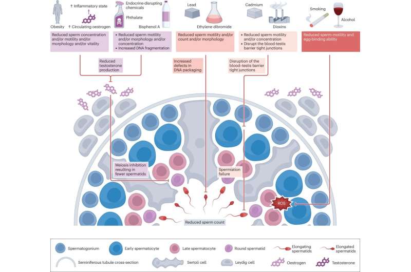 Redaktorların qeydləriSpermatogenez həyat tərzi və ətraf mühit faktorları ilə pozula bilər. Kredit: Nature Reviews Urology (2025). DOI: 10.1038/s41585-025-01047-1