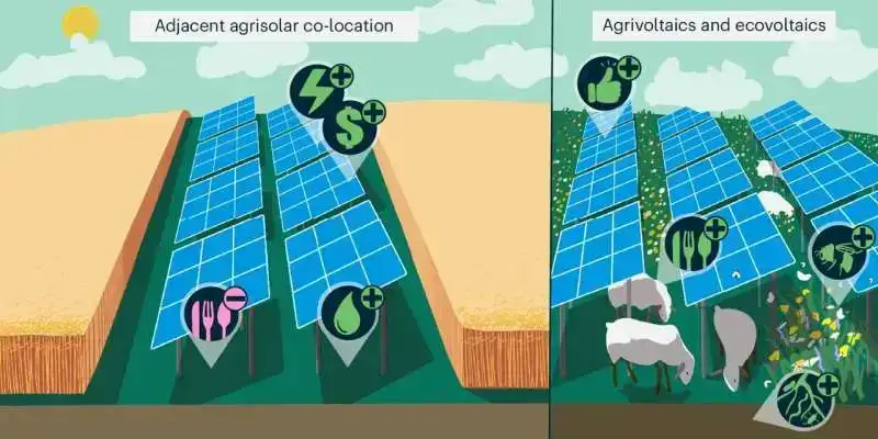 Bu rəqabətli maraqlara görə bəzi fermerlər kolokasiya metodu adlanan üsula müraciət etdilər: landşaftın məhsuldarlığını artırmaq üçün məqsədyönlü şəkildə məhsullarla yanaşı günəş enerjisi massivlərinin quraşdırılması.